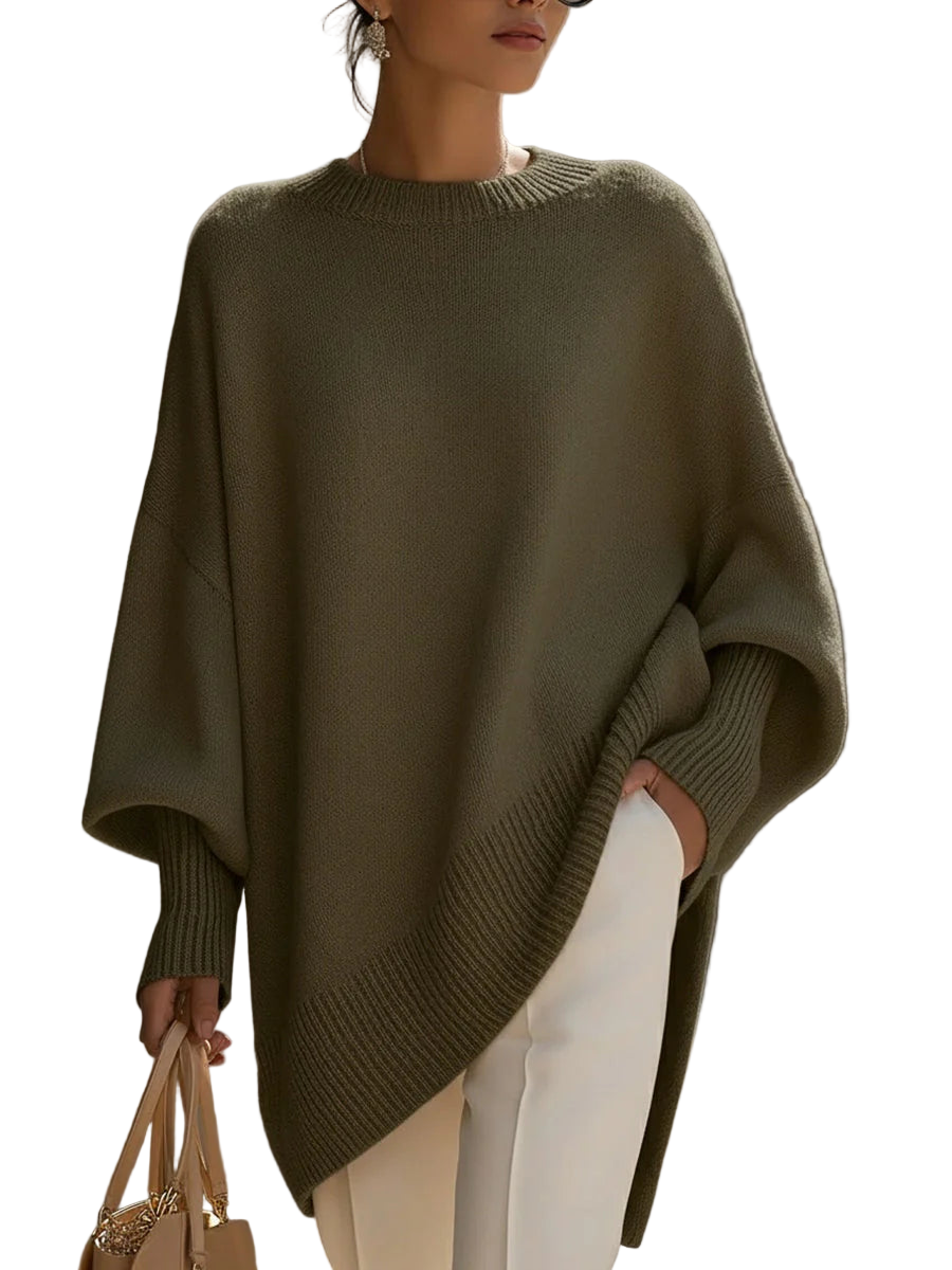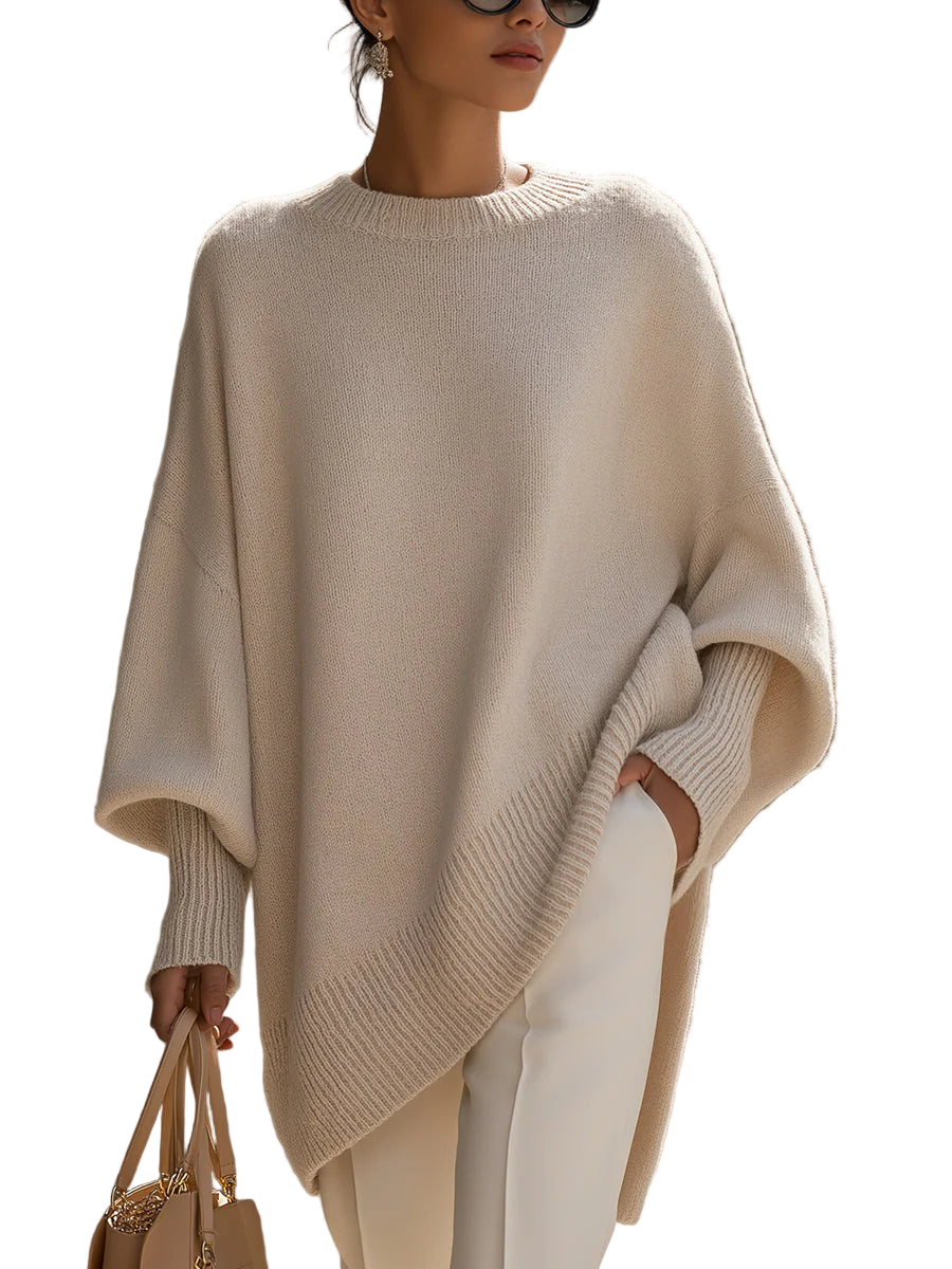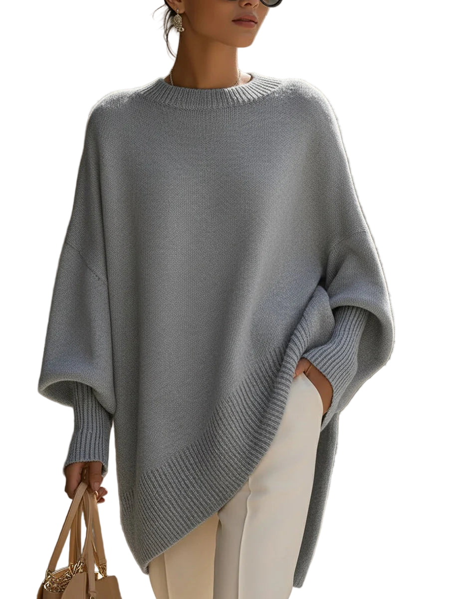 Este suéter asimétrico está pensado para quienes buscan un equilibrio perfecto entre estilo y comodidad. Su corte amplio y el dobladillo asimétrico estilizan la silueta de manera natural, aportando dinamismo y un toque contemporáneo a cualquier conjunto.