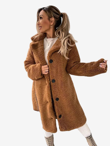 Este abrigo de peluche estilo Teddy combina comodidad, abrigo y un diseño moderno que eleva cualquier conjunto. Su textura suave y envolvente aporta una sensación cálida inmediata, mientras que el cuello estructurado y la botonadura sencilla añaden un toque elegante y refinado.